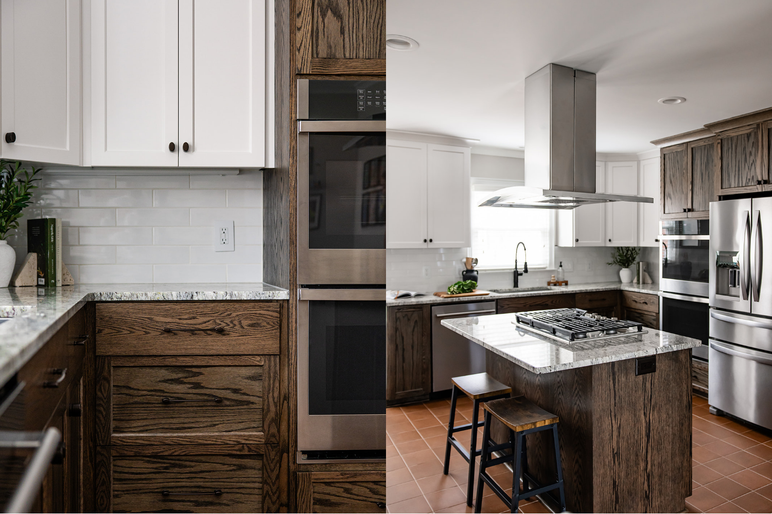 I can’t believe it’s not walnut! Would you believe us if we told you these cabinets are actually dark-stained oak?